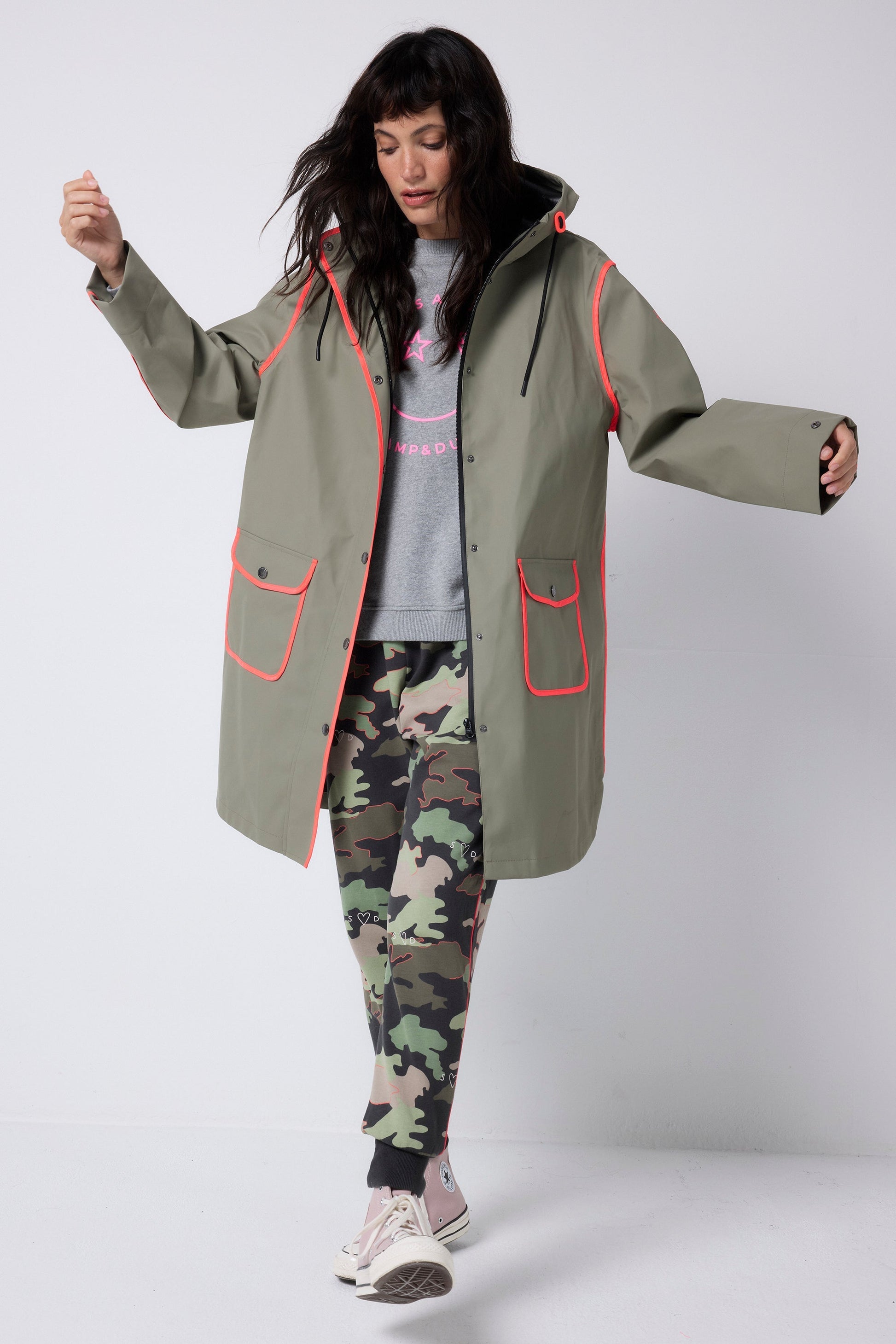 Zachowaj elegancję - niezależnie od pogody - z naszym wszechstronnym khaki płaszczem przeciwdeszczowym. Niezależnie od tego, czy jesteś na wyjeździe na wsi, czy spacerujesz wczesnym rankiem, ta kurtka nie tylko uzupełnia Twój wygląd - *to* jest Twój wygląd. To moda spotyka funkcjonalność, bez względu na prognozę.